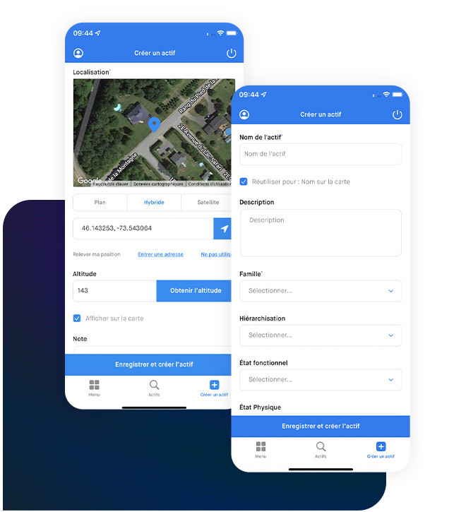 En quelques secondes, ajoutez un actif à partir de votre appareil mobile. Vous pouvez enrichir cette donnée au fil du temps, selon vos priorités, en ajoutant des informations historiques et financières ou en joignant un plan, un croquis ou un manuel d’opération.
